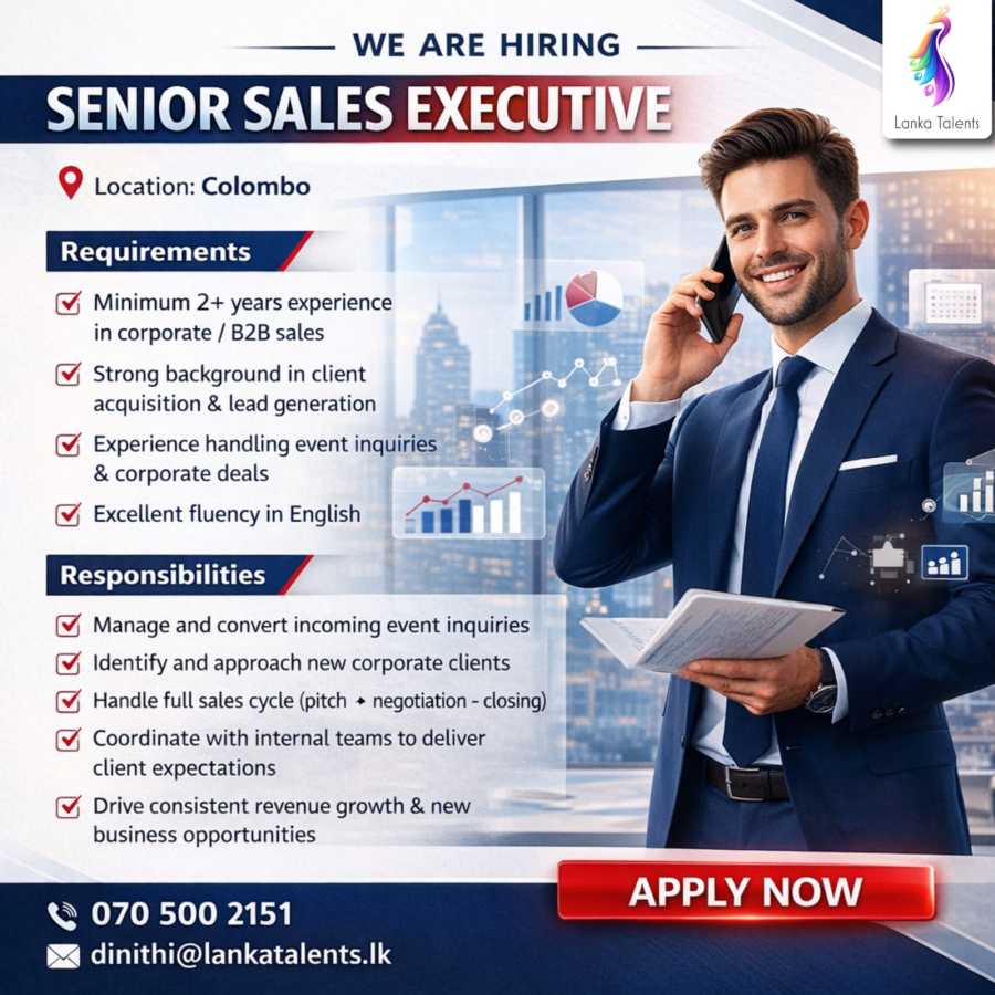 We are looking for a motivated Senior Sales Executive with experience in corporate/B2B sales. The role involves handling client inquiries, generating leads, managing the full sales cycle, and driving business growth. Strong communication skills and the ability to build client relationships are essential.