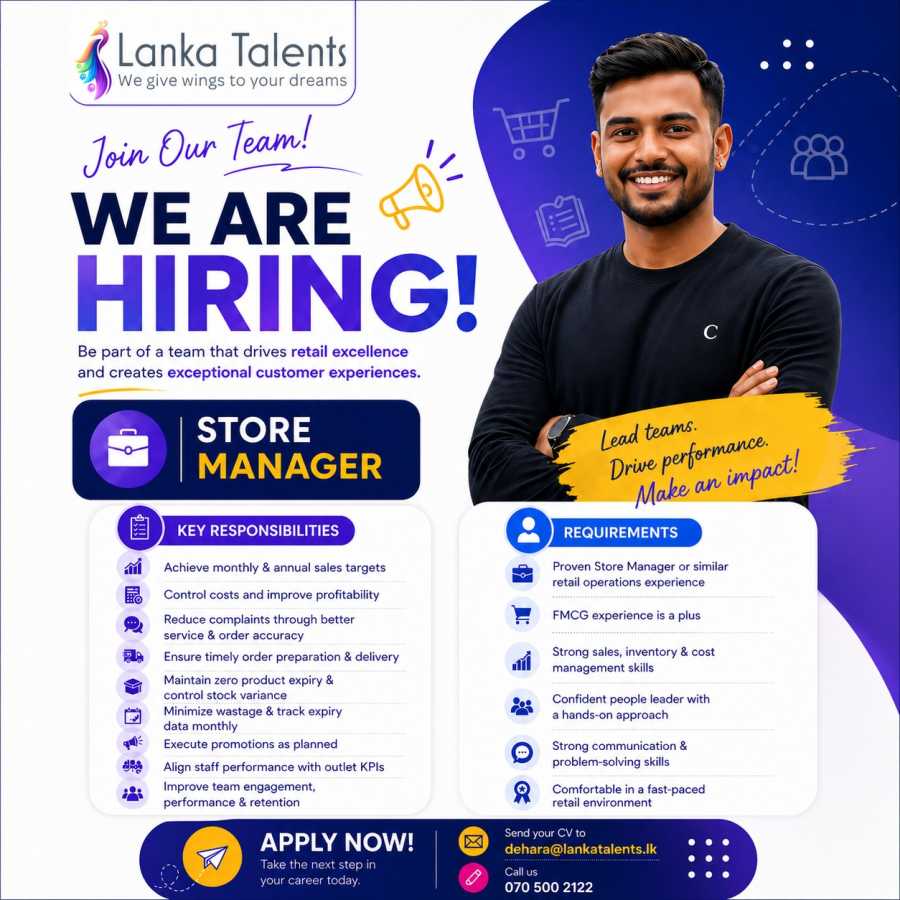 📧 Send your CV to: dehara@lankatalents.lk